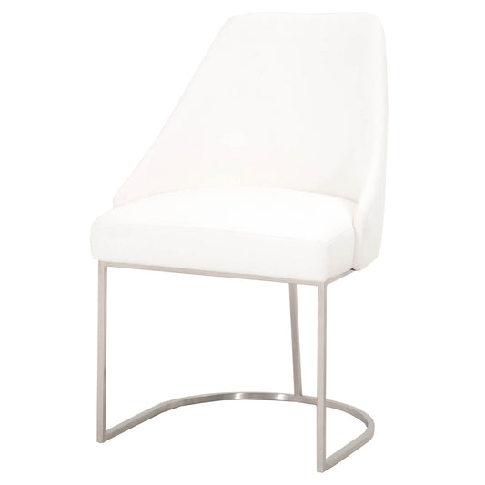 Set of Two White and Silver Upholstered Faux Leather Dining Parsons Chairs