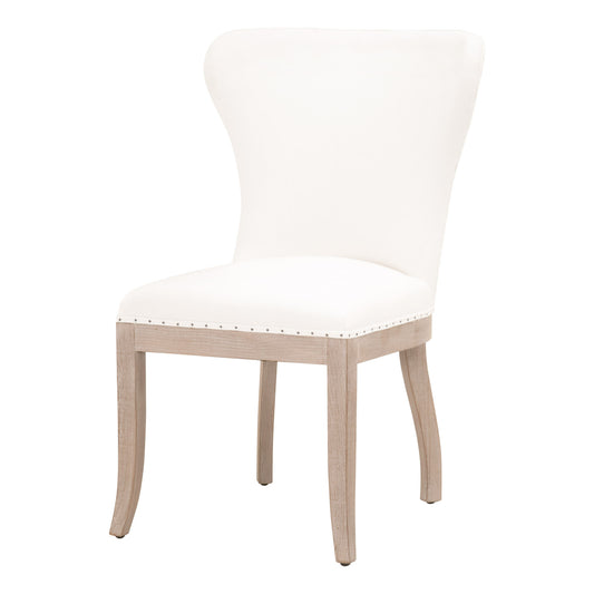 Set Of Two White And Brown Slipcovered Upholstered Linen Parsons Chairs