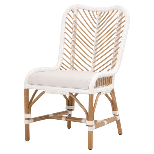 Set Of Two White And Brown Fabric Rattan Bentwood Back Side Chairs