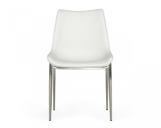 Set of Two White Faux Faux Leather Steel Stacking Chairs
