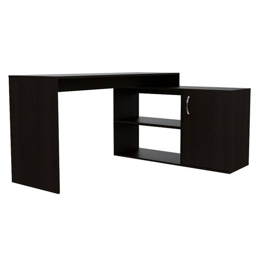 Sleek and Luxurious Ergonomic Dark Brown Office Desk with Storage