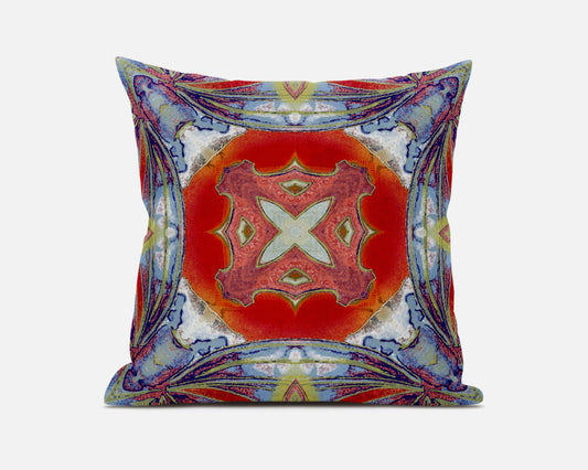16” Blue Orange Mandala Zippered Suede Throw Pillow