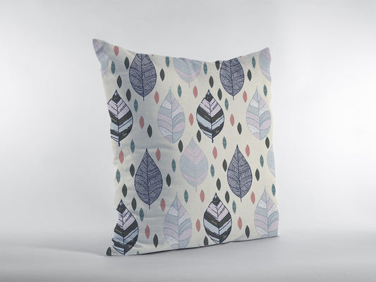 16” Cream Gray Leaves Suede Decorative Throw Pillow
