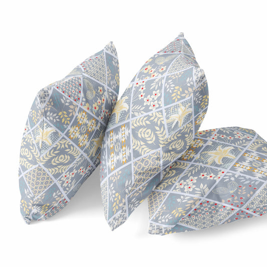 16” Indigo Gray Tropical Zippered Suede Throw Pillow