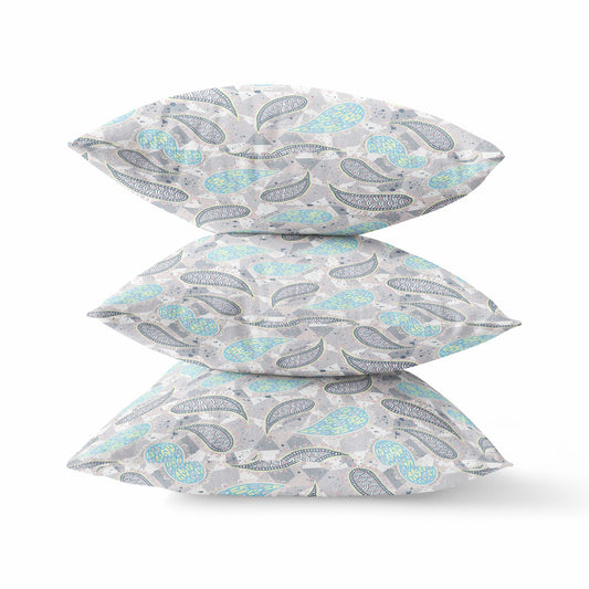 16” Gray Turquoise Boho Paisley Suede Throw Pillow