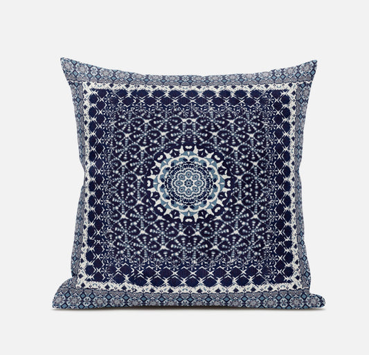 16” Indigo Boho Ornate Zippered Suede Throw Pillow