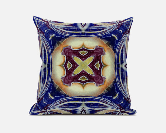 16” Indigo Blue Geostar Zippered Suede Throw Pillow