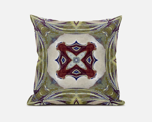 16” Green Brown Geo Tribal Suede Throw Pillow