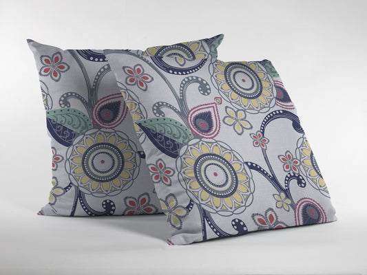 16” Yellow Gray Boho Ornate Zippered Suede Throw Pillow