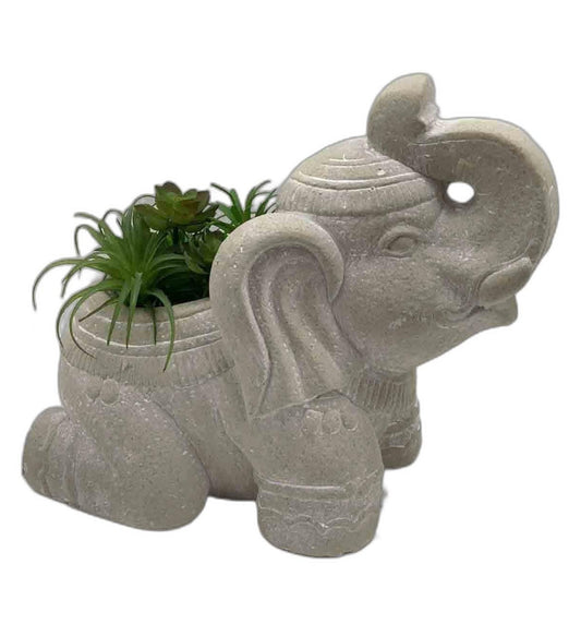 17" Cream Elephant Indoor Outdoor Planter Statue