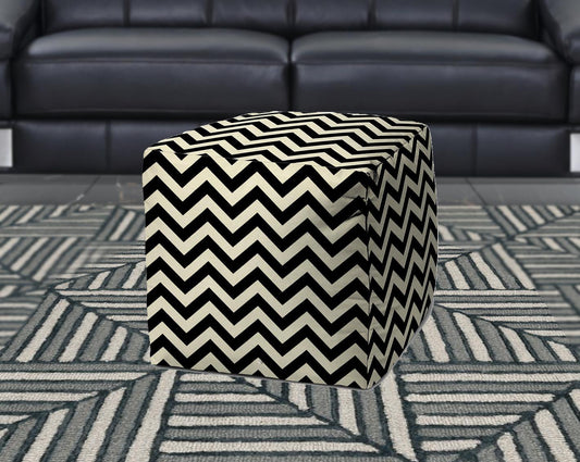 17" Black And White Polyester Cube Chevron Indoor Outdoor Pouf Ottoman