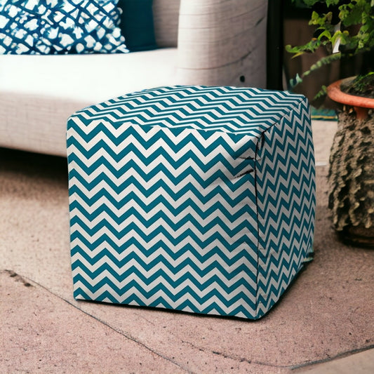 17" Blue and White Polyester Cube Chevron Indoor Outdoor Pouf Ottoman