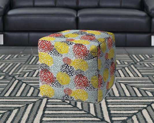 17" Blue Cube Floral Indoor Outdoor Pouf Cover