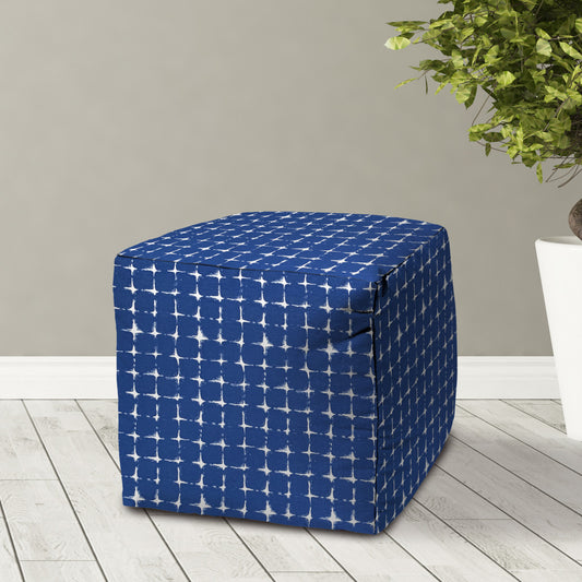 17" Blue and White Polyester Cube Geometric Indoor Outdoor Pouf Ottoman