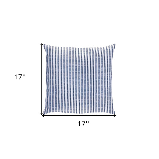17" Blue and White Striped Zippered Polyester Blend Throw Pillow