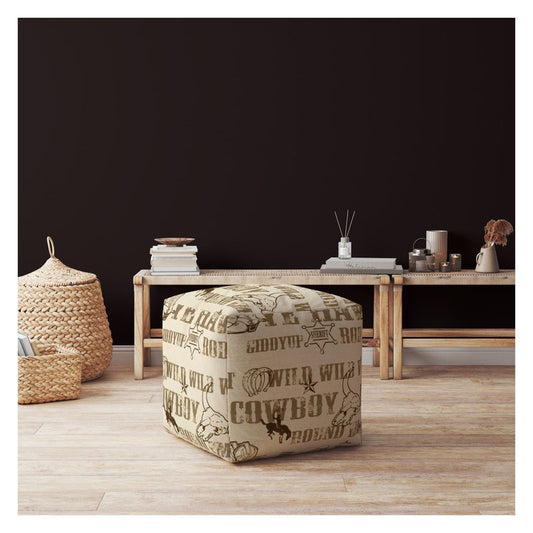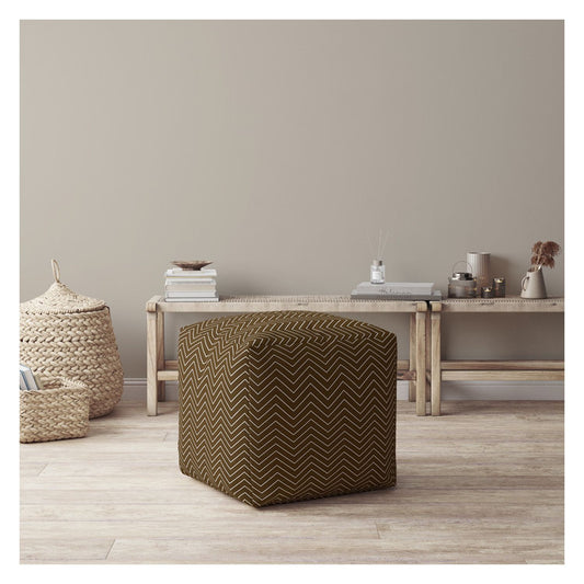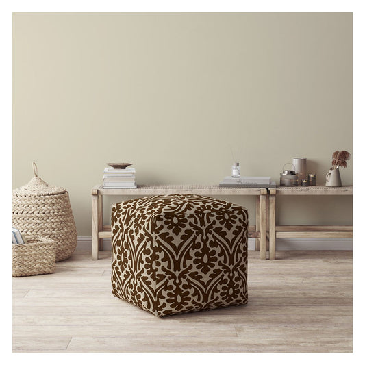 17" Brown Polyester Cube Abstract Indoor Outdoor Pouf Ottoman