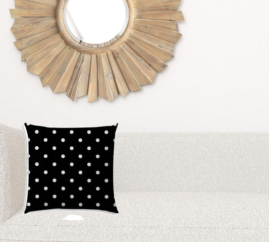 17" X 17" Black And White Zippered Polka Dots Throw Indoor Outdoor Pillow