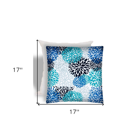 17" X 17" Blue And White Zippered Floral Throw Indoor Outdoor Pillow