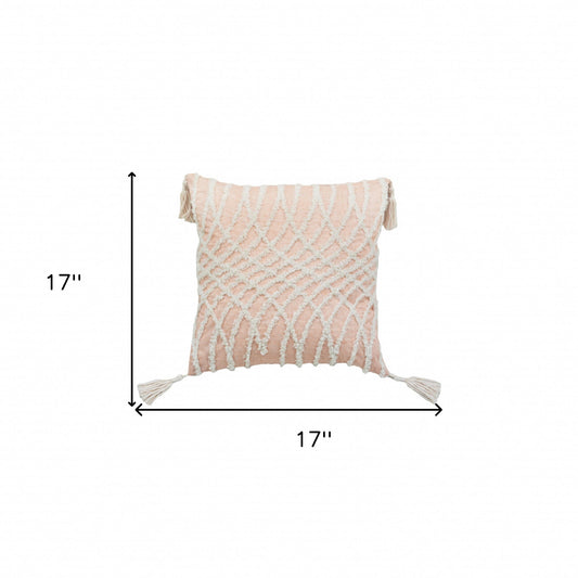 17" X 17" Beige And White Abstract Zippered Polyester Throw Pillow With Tassels