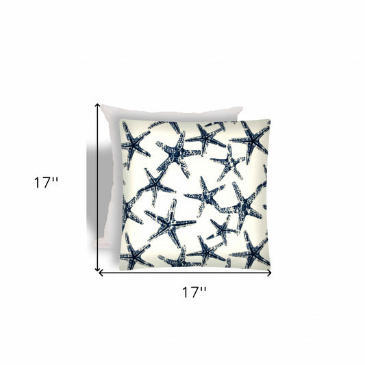 17" X 17" Navy Blue And White Starfish Zippered Coastal Throw Indoor Outdoor Pillow