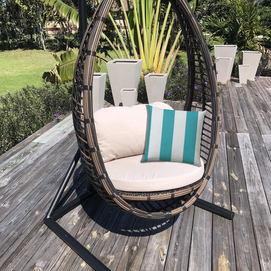 17" X 17" Turquoise And White Zippered Striped Throw Indoor Outdoor Pillow