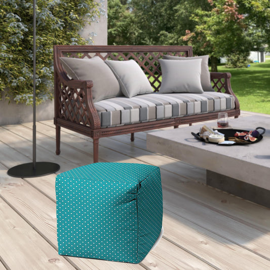 17" Yellow Polyester Cube Polka Dots Indoor Outdoor Pouf Ottoman