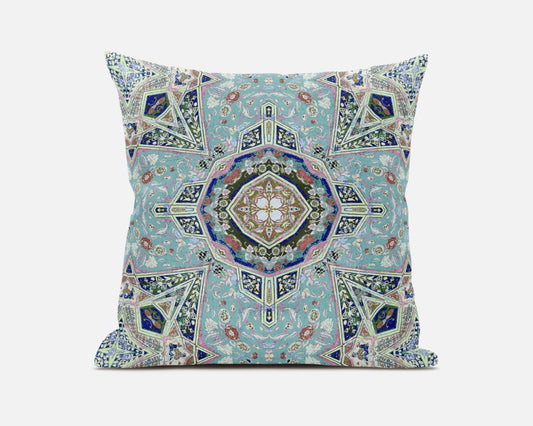 18" Aqua Blue Boho Chic Pattern Suede Throw Pillow