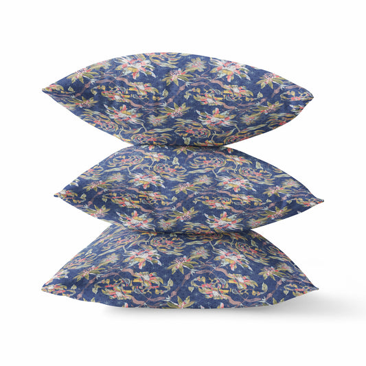 18" Blue Yellow Springtime Zippered Suede Throw Pillow