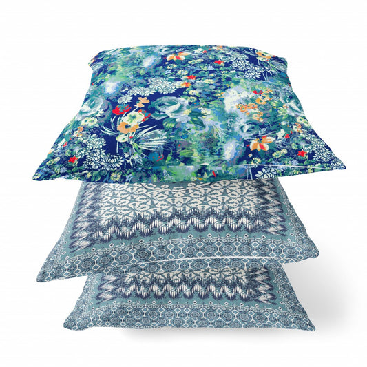 18" Blue Turquoise Springtime Zippered Suede Throw Pillow