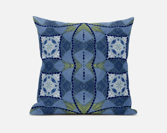 18" Boho Chic Blue Textured Lines Throw Pillow