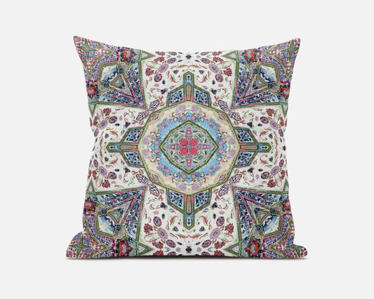 18" Cream Pink Boho Flower Suede Throw Pillow