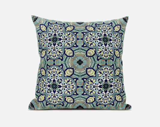 18" Indigo Blue Boho Floral Geo Suede Throw Pillow