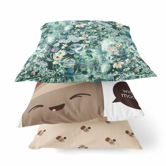 18" Green Peach Floral Zippered Suede Throw Pillow