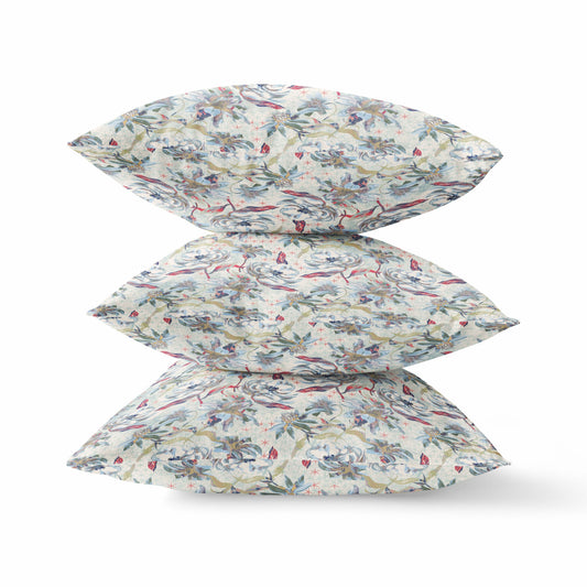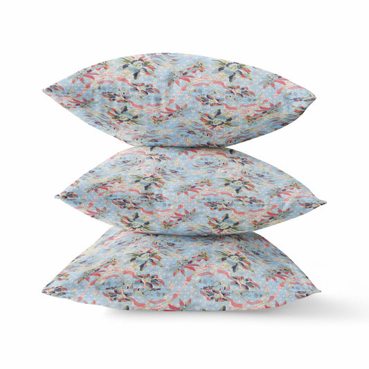 18" Light Blue Pink Floral Geometric Suede Throw Pillow