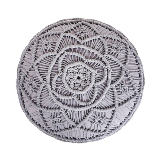 18" Light Gray Cotton Blend And Brown Round Pouf Ottoman