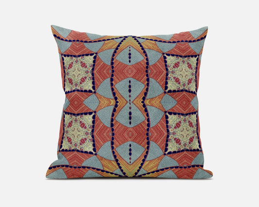 18" Red Blue Cosmic Circle Boho Suede Throw Pillow