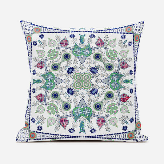 18" X 18" Blue and White Broadcloth Paisley Zippered Pillow