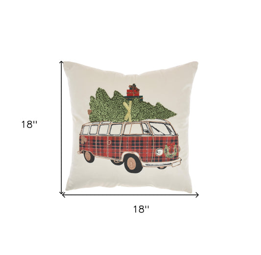 18" X 18" Cream Red And Green Zippered Handmade Polyester Christmas Throw Pillow