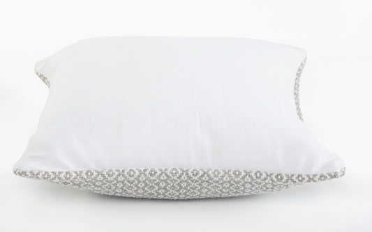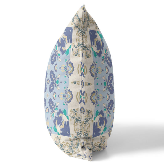 18" X 18" Off White And Blue Floral Blown Seam Suede Throw Pillow