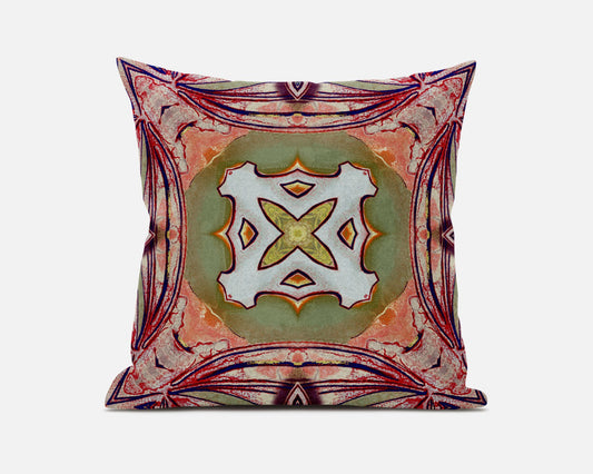 18" X 18" Peach Magenta and Green Geometric Suede Zippered Pillow