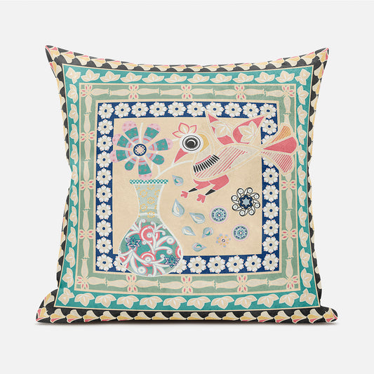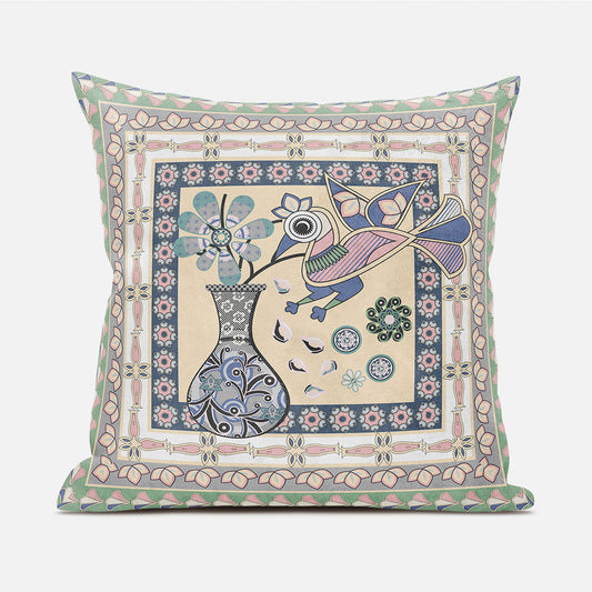 18" X 18" Pink and Green Peacock Broadcloth Floral Zippered Pillow