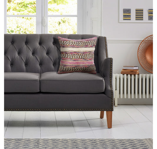 18" X 18" Pink and Ivory Striped Cotton Blend Zippered Pillow