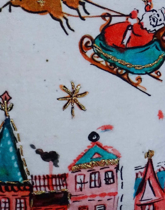 18" X 18" Red And Green Christmas Santa and Reindeer Throw Pillow With Pom Poms