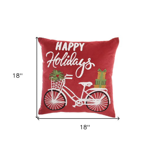 18" X 18" Red Zippered Handmade Polyester Christmas Throw Pillow