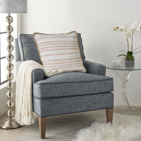 18" X 18" White Gray And Tan 100% Cotton Striped Zippered Pillow