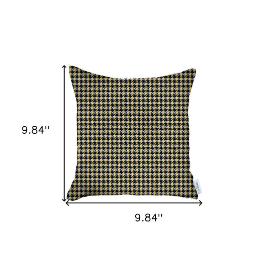 18" X 18" Yellow And White Houndstooth Zippered Handmade Polyester Throw Pillow Cover