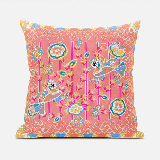 18" X 18" Yellow and Peach Peacock Broadcloth Floral Zippered Pillow