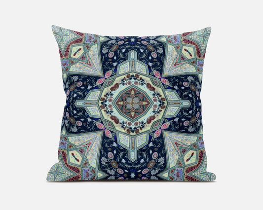 18"X18" Aqua Microsuede Geometric Zippered Pillow