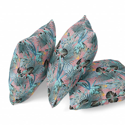 18” Black Blue Tropical Zippered Suede Throw Pillow