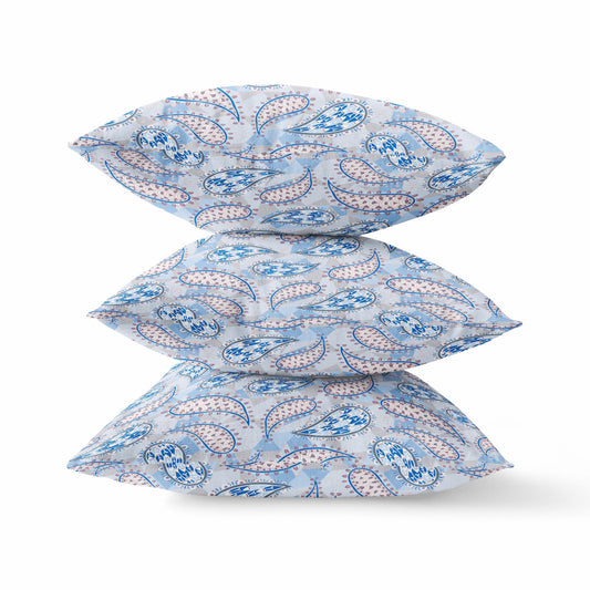18” Blue Gray Boho Paisley Suede Throw Pillow
